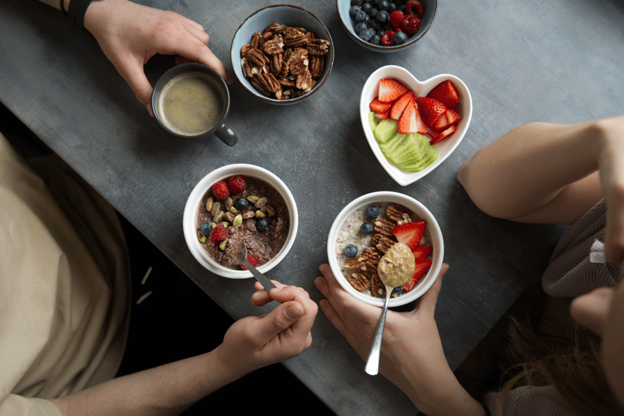 V prvé řadě je důležitá strava bohatá na bílkoviny, zdravé tuky, a komplexní sacharidy. Omezte rafinované cukry, tučné omáčky a ultrazpracované potraviny, které příliš nezvyšují pocit dlouhodobé sytosti a namísto toho vedou ke skokovému zvýšení vašeho kalorického příjmu.