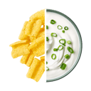 Čočková mouka, slunečnicový olej, kukuřičná mouka, rýžová mouka, ochucující směs 7 % (sušená syrovátka, sůl, cibule 12 %, cukr, laktóza, sušené mléko, kvasnicový extrakt, sušený sýr, česnek, regulátor kyselosti kyselina mléčná, koření, aroma), bramborový škrob, sůl, cukr, sušené mléko, sušená zakysaná smetana* 0,2 %.