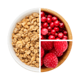 Nebo lehčí kombinace malin a klikvy či mandlí s dýňovými semínky – bez přidaného cukru a s vlákninou z kořene čekanky.